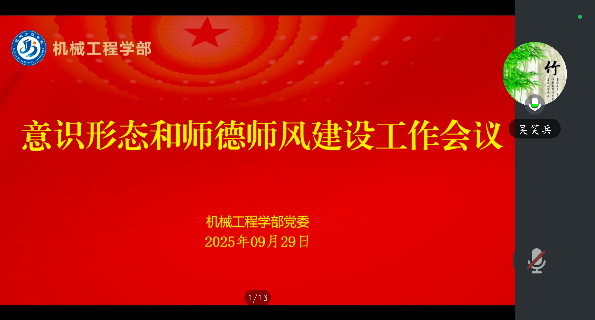 9月29日晚上,机械工程学部召开意识形态和师德师风建设工作会议,通报学部近期意识形态领域情况,启动学部师德师风自查自纠工作。学部全体教职工参加了会议,会议采取视频方式进行。会议由学部副主任陈照强主持。