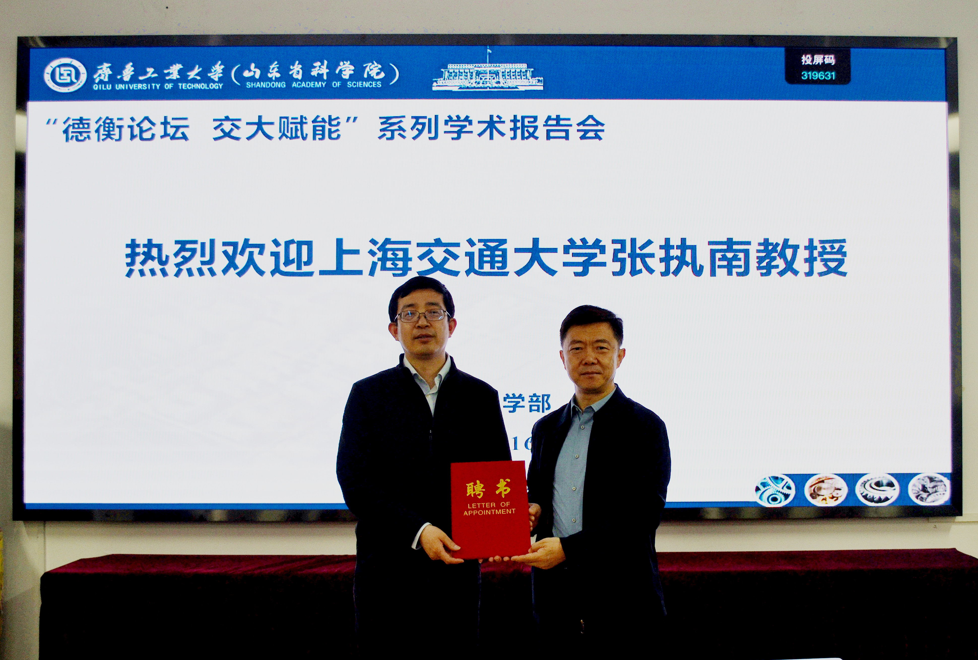报告结束后,副校(院)长许崇海教授代表校(院)为张执南教授颁发了客座教授聘书。